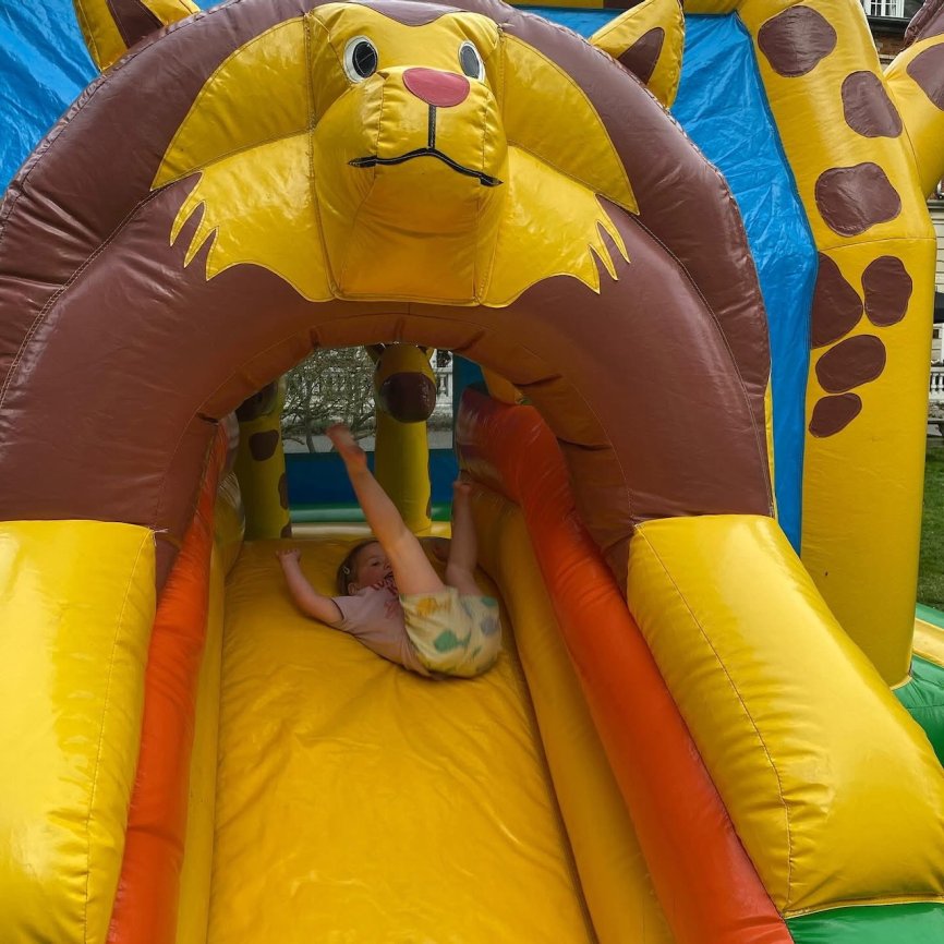 Met dit springkasteel kunnen de kinderen zich al springend uitleven. Het Junglethema geeft het geheel een mooie en sfeervolle uitstraling. De glijbaan langs de zijkant is gemakkelijk te bereiken via het springvlak en heeft een lage opstap.