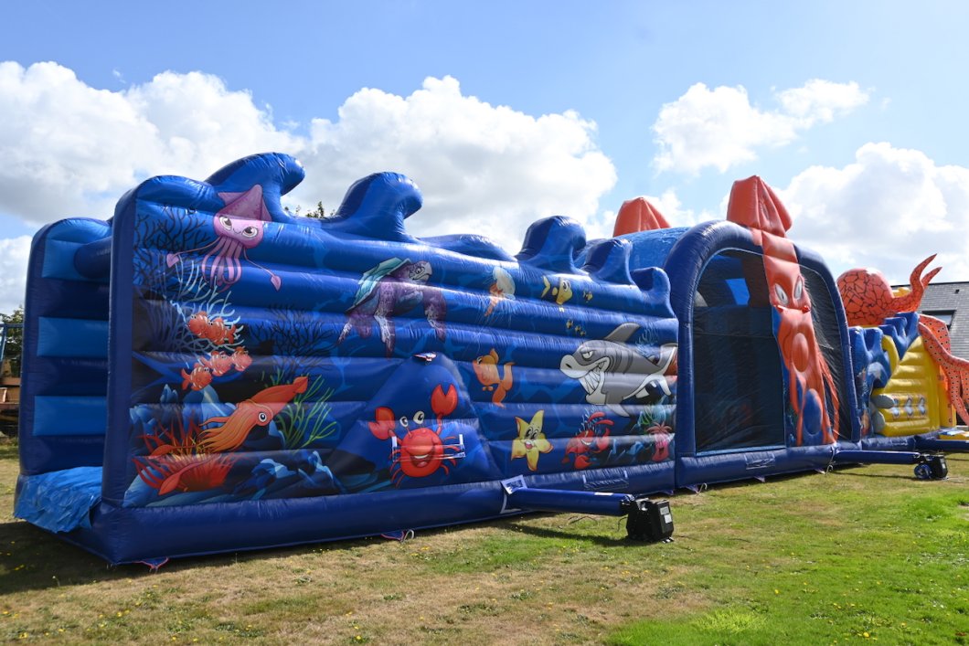 Dit uniek springkasteel is echt voor waaghalzen! Het prikkelt bovendien de fantasie van elk kind. Je waant je zo in de onderwaterwereld van Jules Verne!